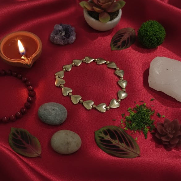 The Golden Pyrite Heart Bracelet blends charm with powerful wealth energy. Pyrite empowers ambition, sharpens intelligence, and shields the wearer from negativity. Known as a money-magnet stone, it boosts confidence and strengthens goal-oriented thinking—perfect for entrepreneurs and professionals.